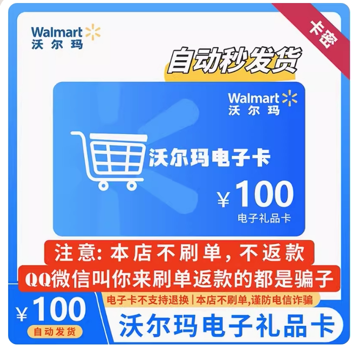 Electronic Card Walmart 100 Yuan Card Secret начинается с 2326. Автоматическое выпуск карт в этом магазине. Обратите внимание на предотвращение мошенничества.