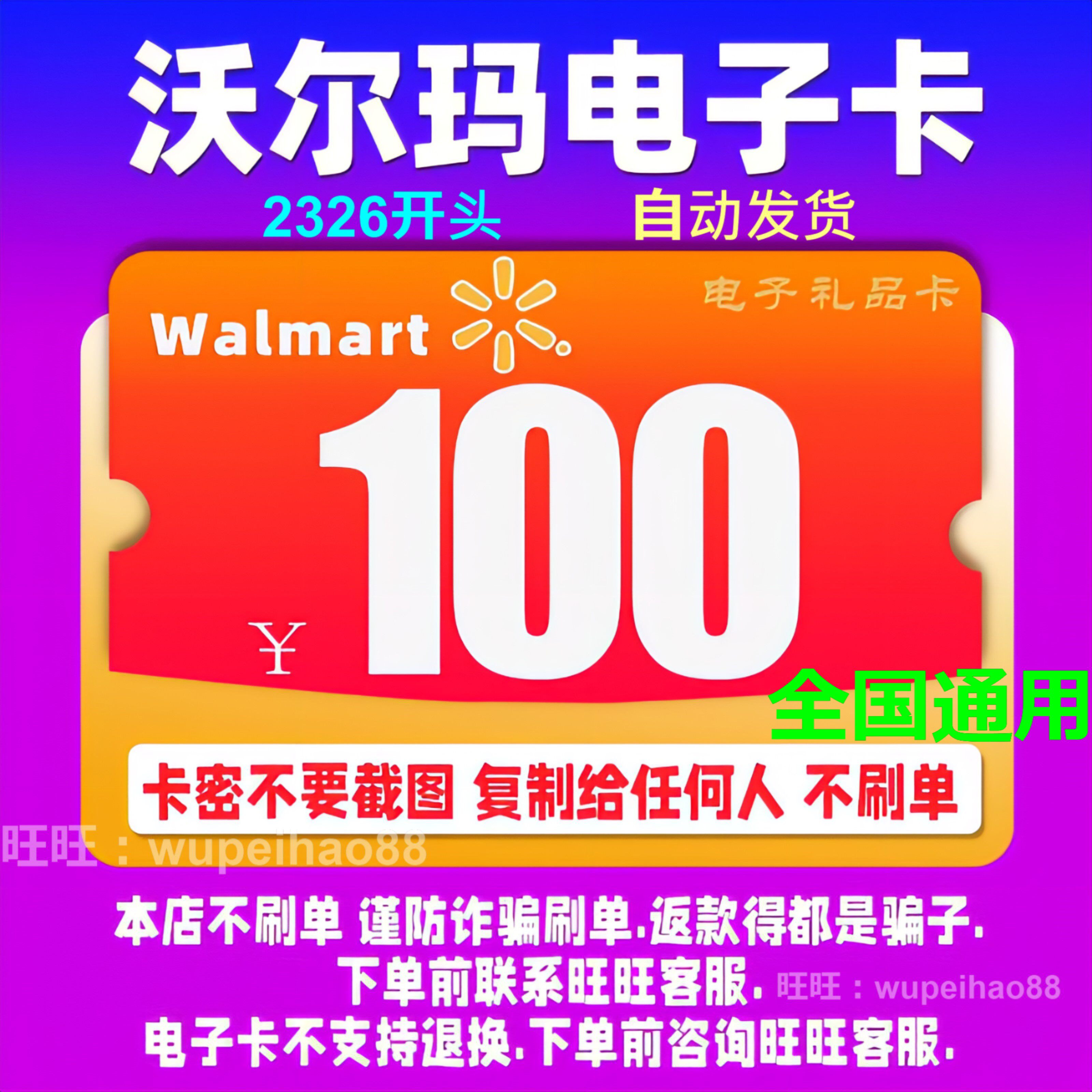 [沃尔玛电子卡100元沃尔玛电子卡密100元购物卡礼品卡卡号自动发卡]