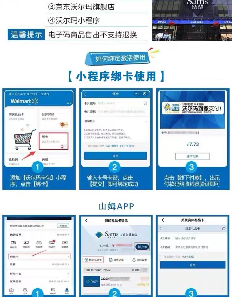 Wal -Mart SAM Электронная карта Wal -Mart Электронная карта 200 Yuan Card 2326 начал автоматическую эмиссию карты по всей стране
