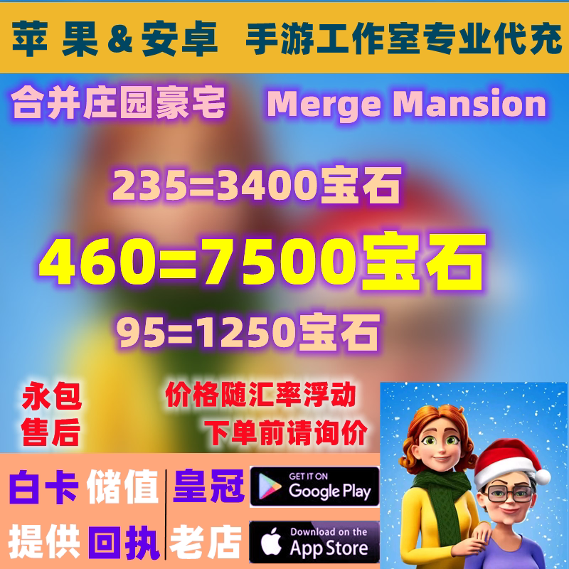 460 Merge Manor Пополнение международного сервера Merge Manor Mansion Мобильная игра Подарочный набор с бриллиантами и драгоценными камнями Белый