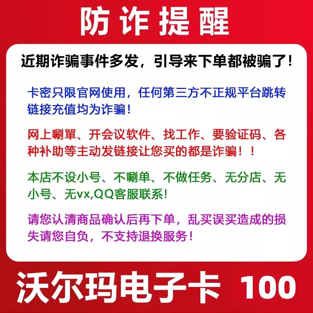 Электронная карта Walmart 100 Yuan Card Secret Walmart Sam Электронная карта по всей стране 100 Юань начинается с 2326