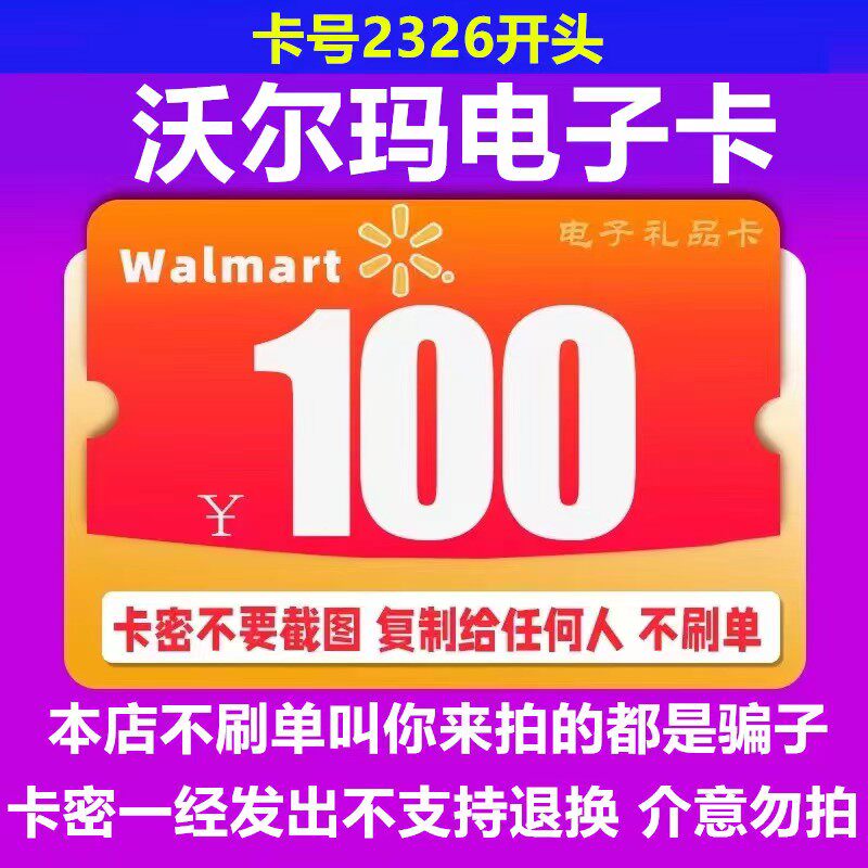 Электронная карта Walmart 100 Yuan Card Password начинается с 2326 подарочных карт общенациональной автоматической доставки