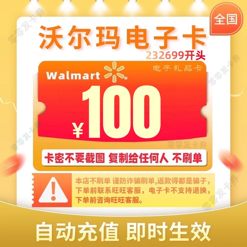 Wal -Macan 100 Yuan Wal -Mart Electronic Card 100 Yuan Calme