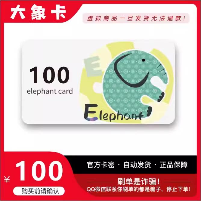 Карта слона, секретная карта 100 юаней/официальная секретная карта/карта слона, секретная карта 100 юаней/автоматически выдаваемая карта пополнения баланса слона