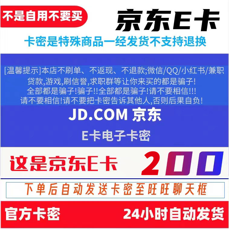 Jingdong e card 200 Yuan Электронная карта секретной подарочной карты Automatic Automation [пусть вы снимаете всех мошенников]