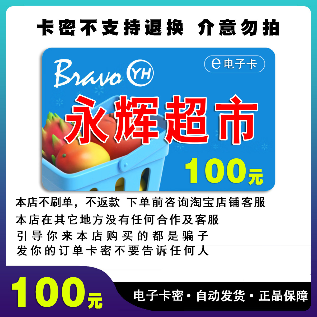 Электронная карта супермаркета Yonghui на 100 юаней, код карты, купон подарочной карты 23360 Электронная карта Yonghui 100