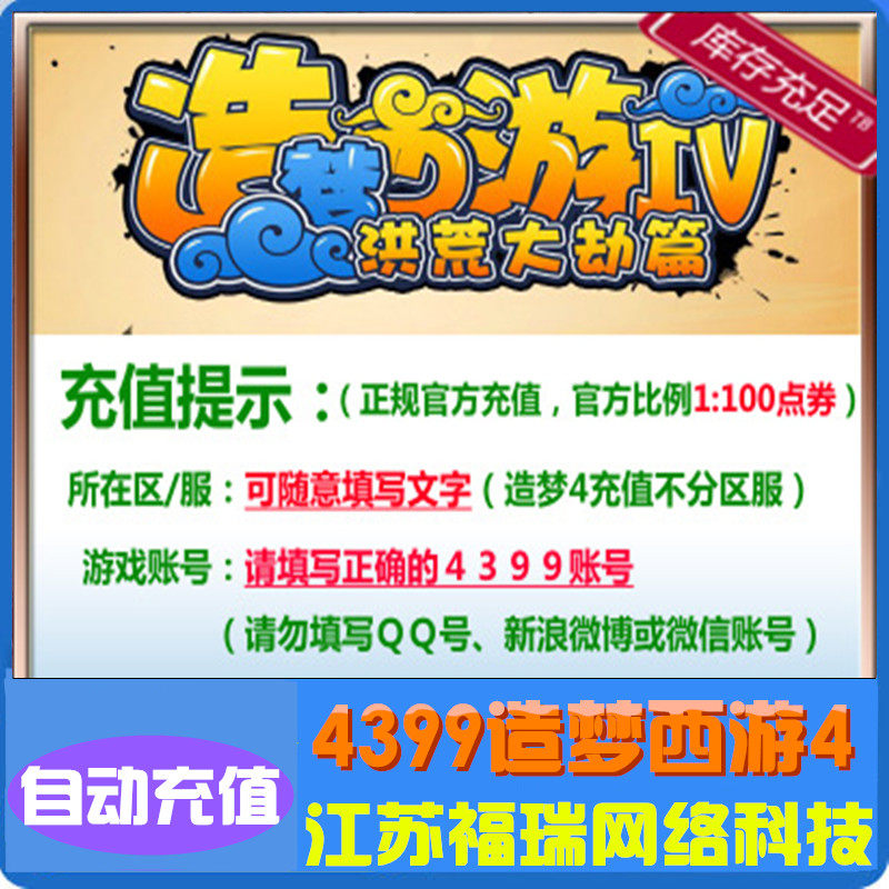 4399 Dream Westward Journey 4 балла 10 Юань, 1000 очков, 4399, одна карта для создания автоматической перезарядки Dream 4