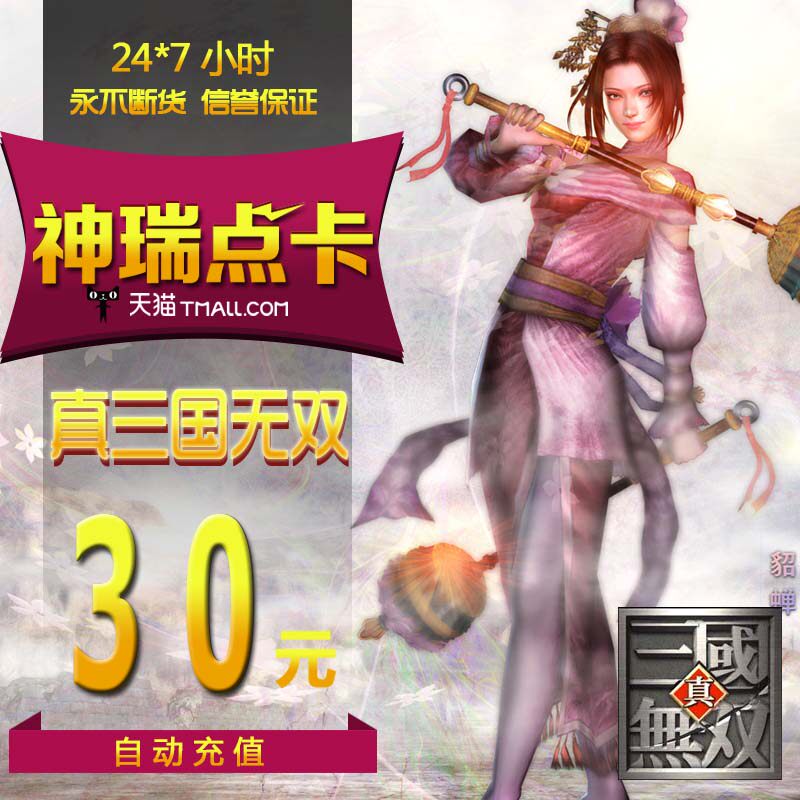 Реальные три королевства Wushuang Ol Point Card/Zhen Three Kingdoms Wushuang OL/30 Юань 3000 Беспроцентная монетная карта автоматическая перезарядка