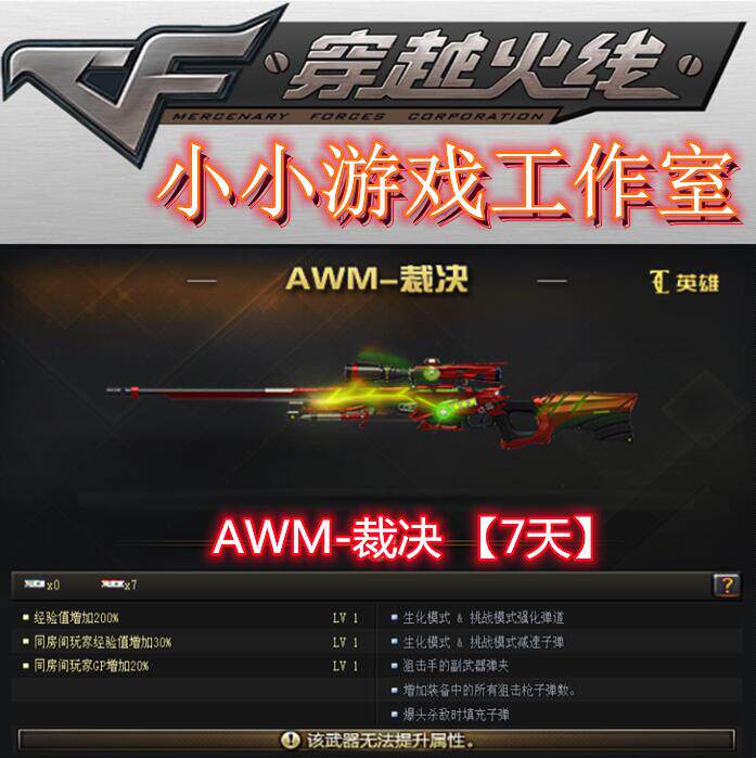 CF Cross Fire AWM Judgment 7 дней без AWM-s Снайпер с глушителем Золото Awm Граффити Awm Gun King Рейтинг Разрушение