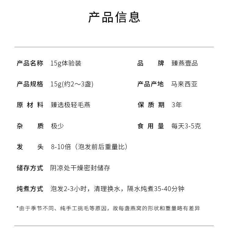 臻燕壹品 Малайзийское птичье гнездо подлинное 15 г беременных женских питательных добавок импортировали официальное лицо 5A Ян Дажао