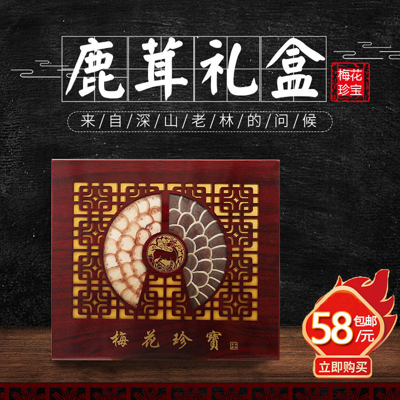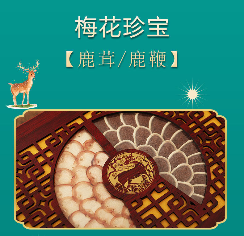 Северо-восточный деликатес: двойные сокровища пятнистого оленя горы Чанбайшань, ломтики порошка крови, ломтики рогов, ломтики оленьего кнута, подарочная коробка, тушеная курица в вине