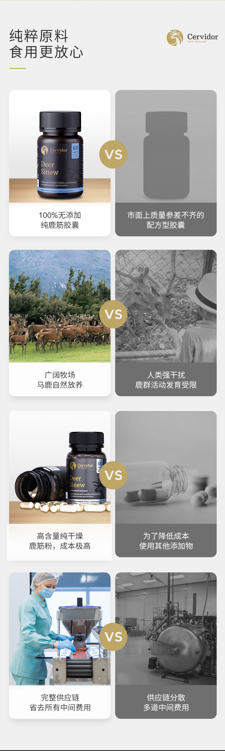 [3 бутылки] Червидор Новозеландский оленя сухожилия оленя капсулы коллагена высокая чистота высокая чистота улучшает кожу