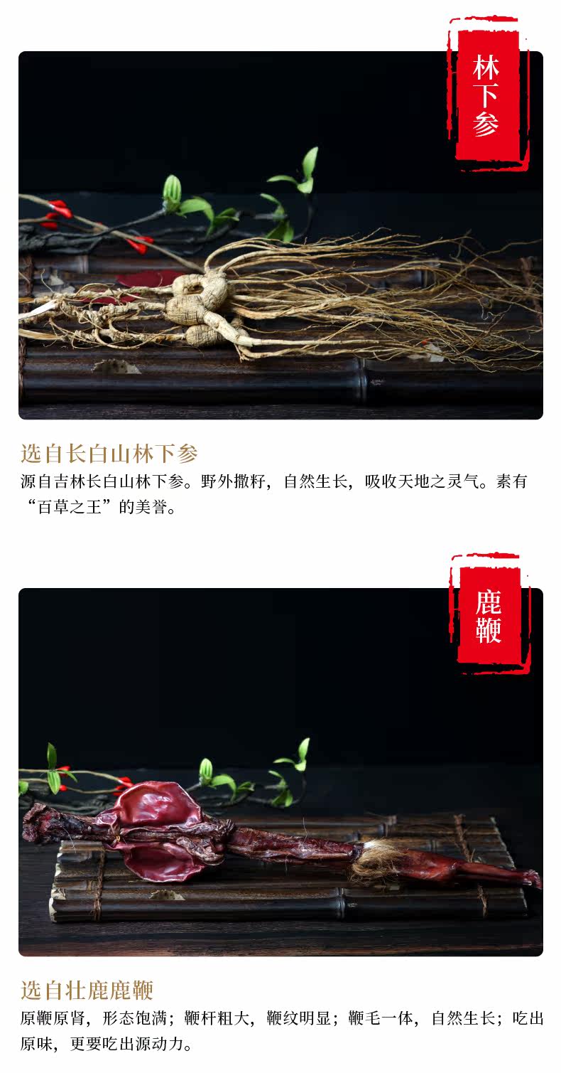 Циджи пропитанное вином с роскошной версией оленя оленя, оленя, оленя, женьшеня Гинзэнд, женьшеня, женьшеня женьшеня, женьшеня, женьшеня, женьшеня, женьшеня макака