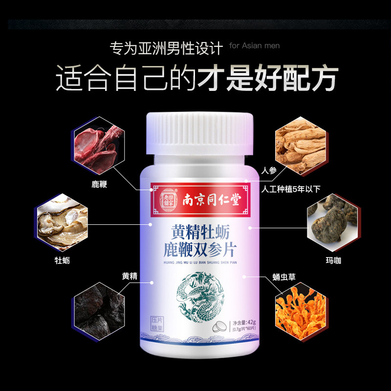 Nanjing tongrentang Желтая эссенция устричная оленя четыре кнута бисоптис кордилларианцы женьшень женьшень мужчина -мужчина питательные таблетки jg