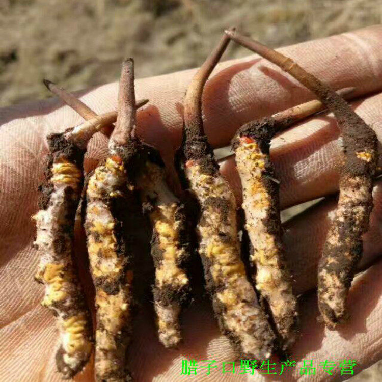 На площадке раскопок Cordyceps выкопали тибетцы.После возвращения, очистите его кистью.