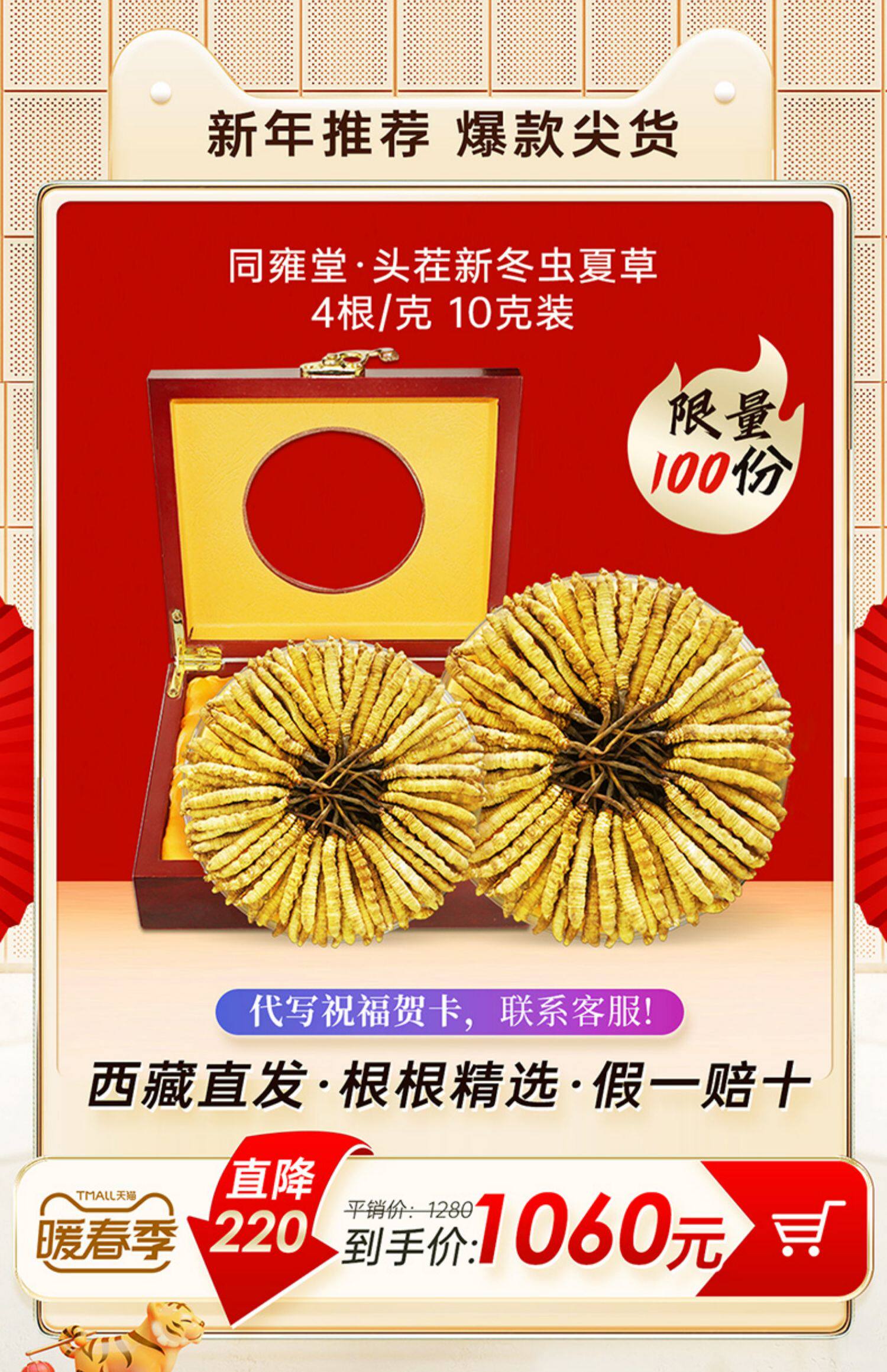[Качество тибета] 30 граммов флагманского магазина cordyceps sinensis (4 1 грамма) Первая стадия сухой кордика
