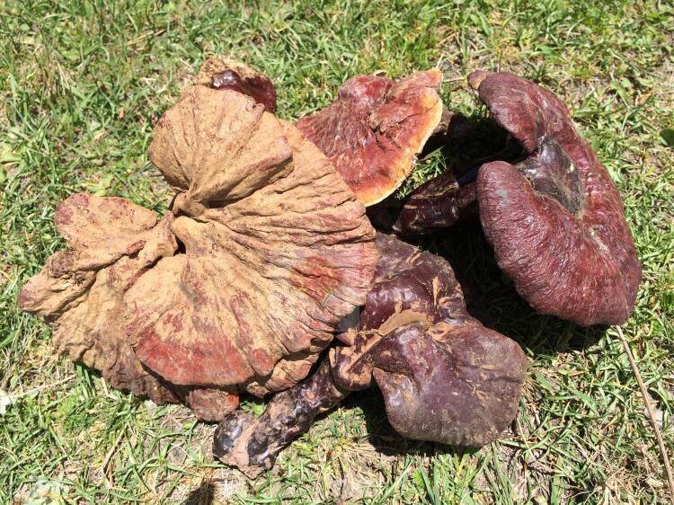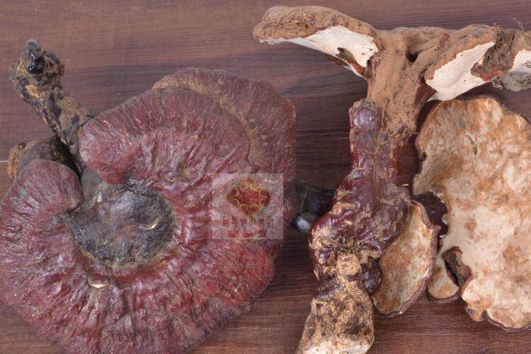 1Цветная дикая ганодерма Lucidum солнечно и дождь, а цвет темнее.На поверхности ганодермы Lucidum есть маленький порошок спор, а цвет относительно легкий.