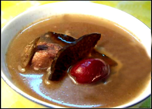 Ganoderma lucidum Черно -белый грибный суп: 6 граммов ганодермы, 6 граммов черного гриба (облачное ухо), 6 грамм белого гриба (белый гриб), 6 Jujube, 200 граммов мышечной свинины.