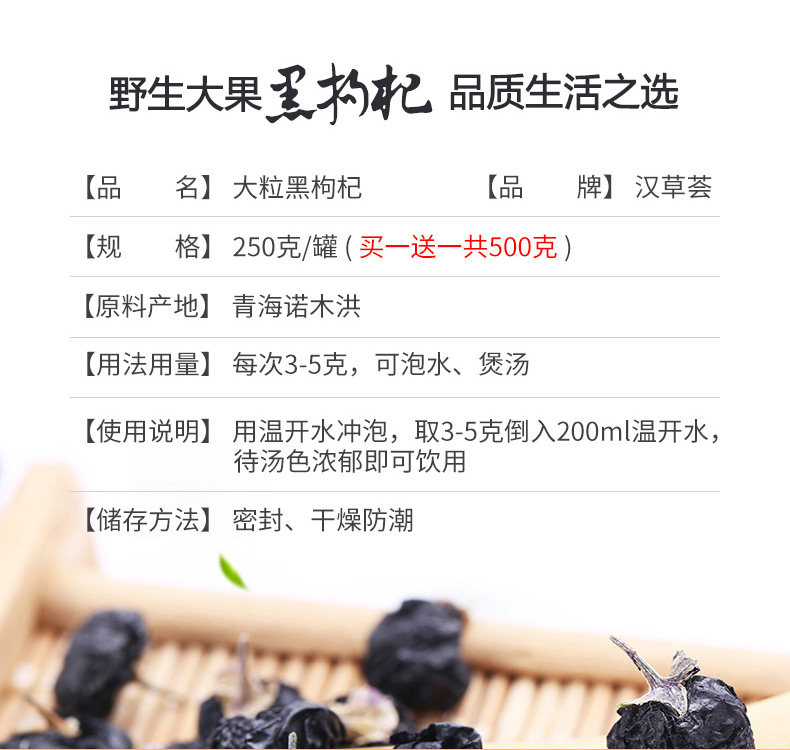 [Купить 1 Получить 2] Hancao Hui Qinghai Black Wolfberry Wild Fruit 500G Big Fruit Black Wolfberry не -ручья волчья