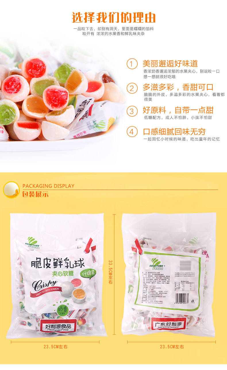 Hao Liyuan хрустящий свежий молочный мяч 500G Multi -vhoplected смешанные сумки маринованные фрукты кантон кондитер