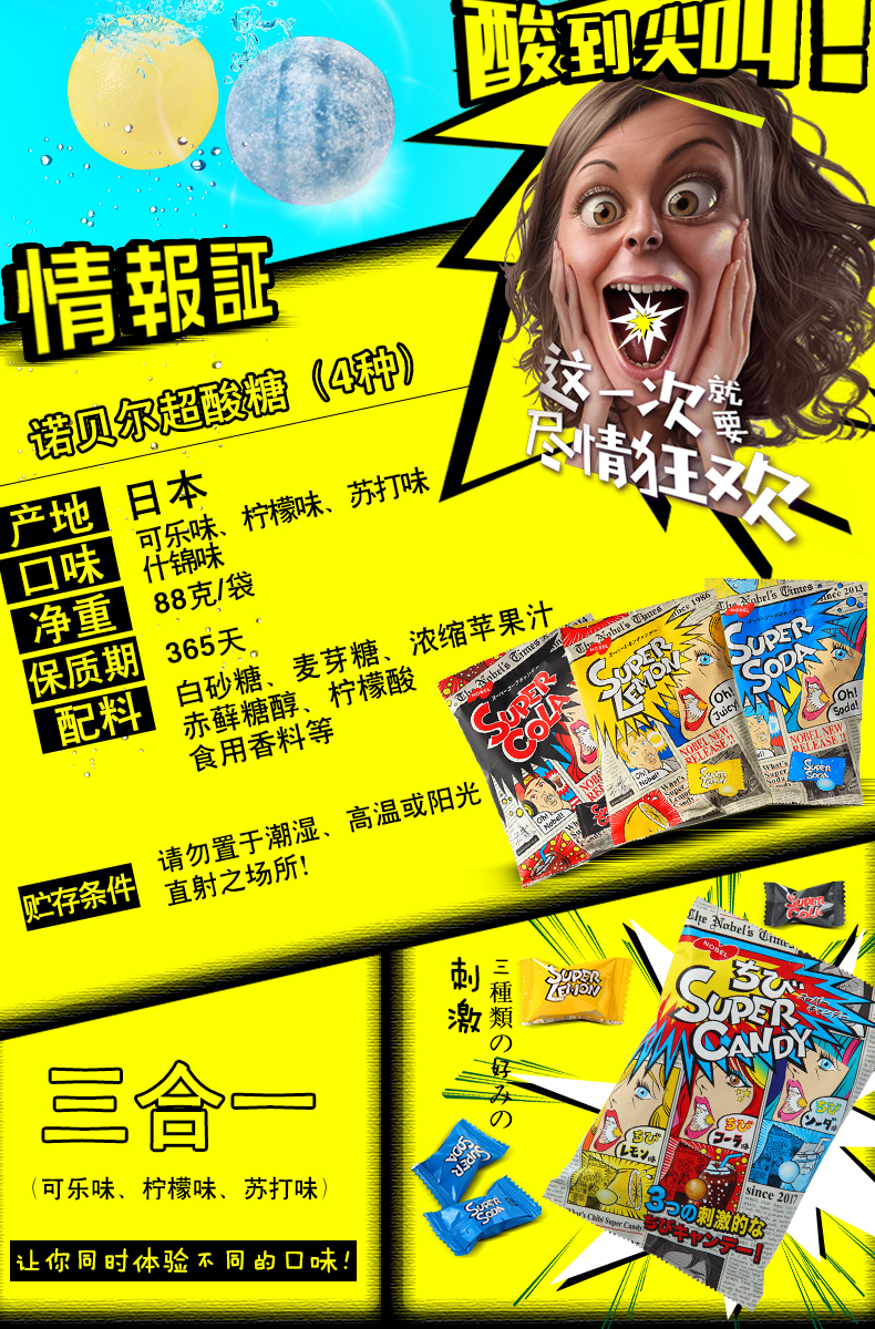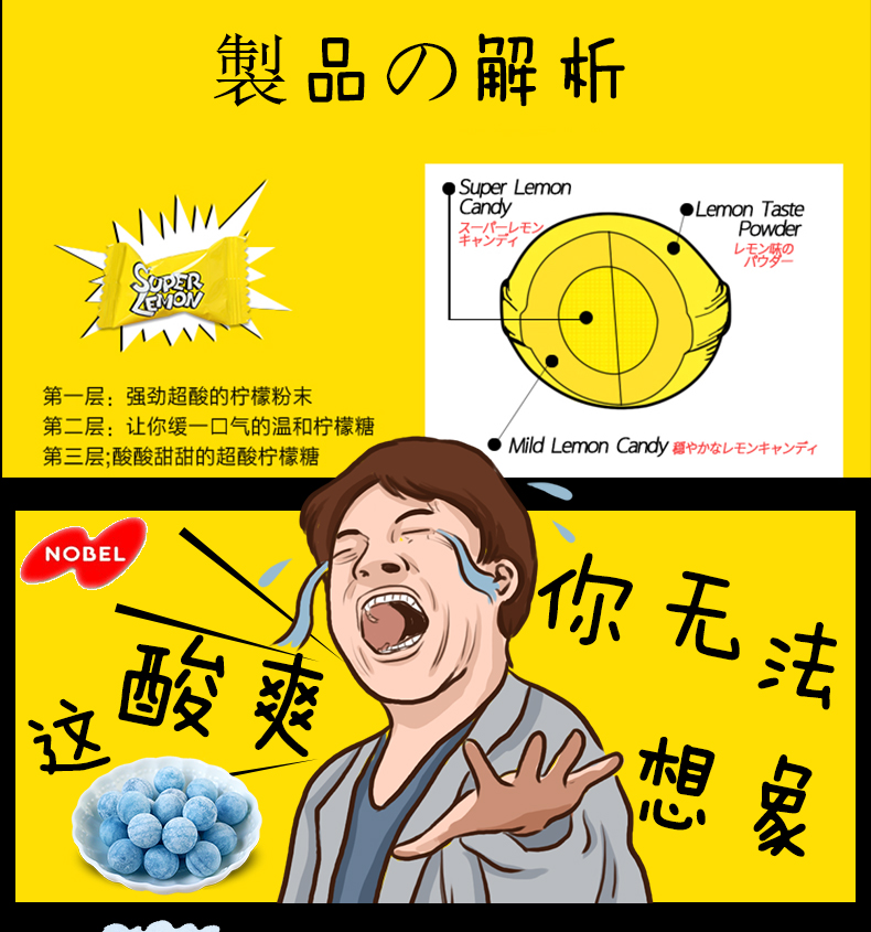 Японский Нобелевский Супер кислотный лимонный крик Крик новогодний фестиваль конфеты Суперклеоны Извращенное кисло -сахар
