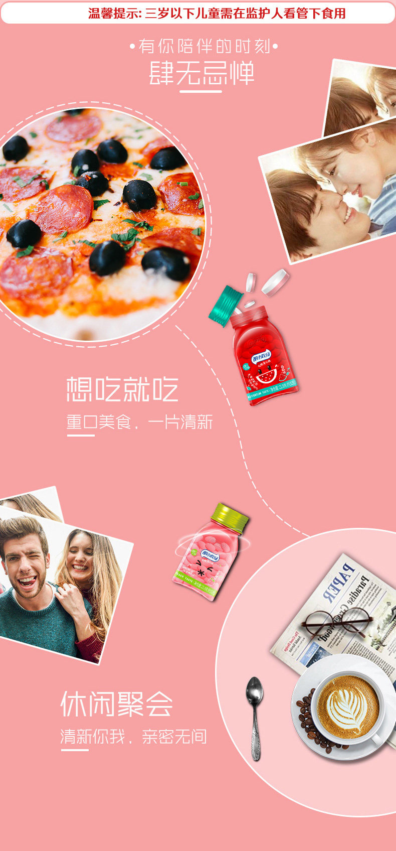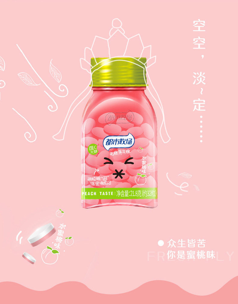 都市牧场 Сахар -без сахара мятный арбуз водяной персик 6 бутылок прозрачного рта с ломтиками с нарезанным дыханием прозрачные конфеты новые закуски и портативные