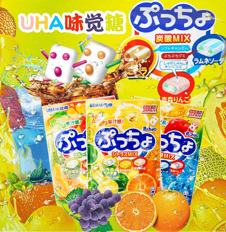 Японская импортная угольная кислота, ластик, жевательные конфеты, 90G, популярно в интернете