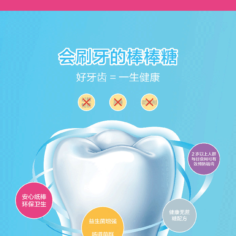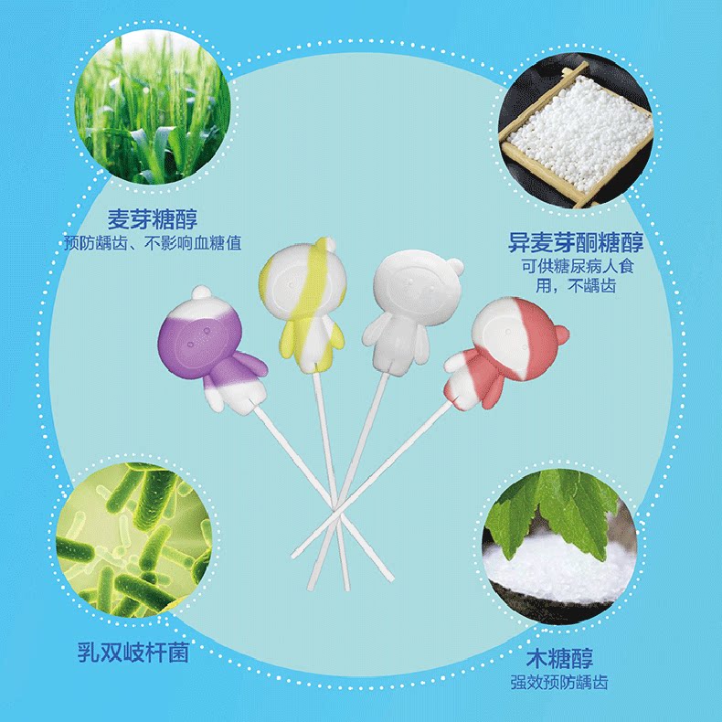 8. Восемь -In -Eaines Sugar Care Sugar может чистить зубы, леденец на леденец, леденцов с гликолем, сахароза молочной кислоты, детские конфеты