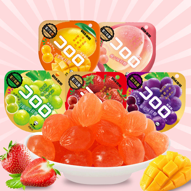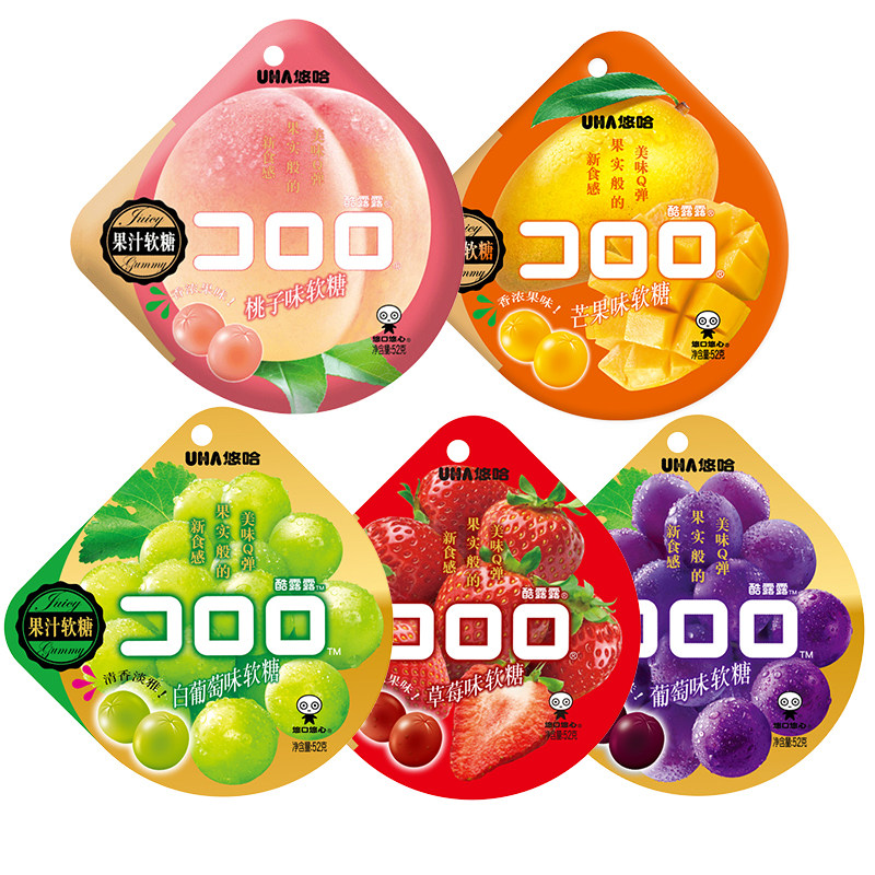 UHA YOUHA COOL LULU QQ Взрывной соус Фонд фонд конфеты резиновый сахар 52 г мешки винограда из клубничного манго вкуса помадка