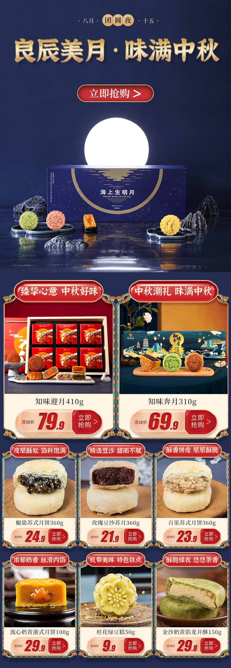 知味观 Лето и сентябрь -стиль середина фестиваля фестиваля Лунный торт 360G китайский время -Хонопонированная кондитерская еда Седоу повседневные закуски