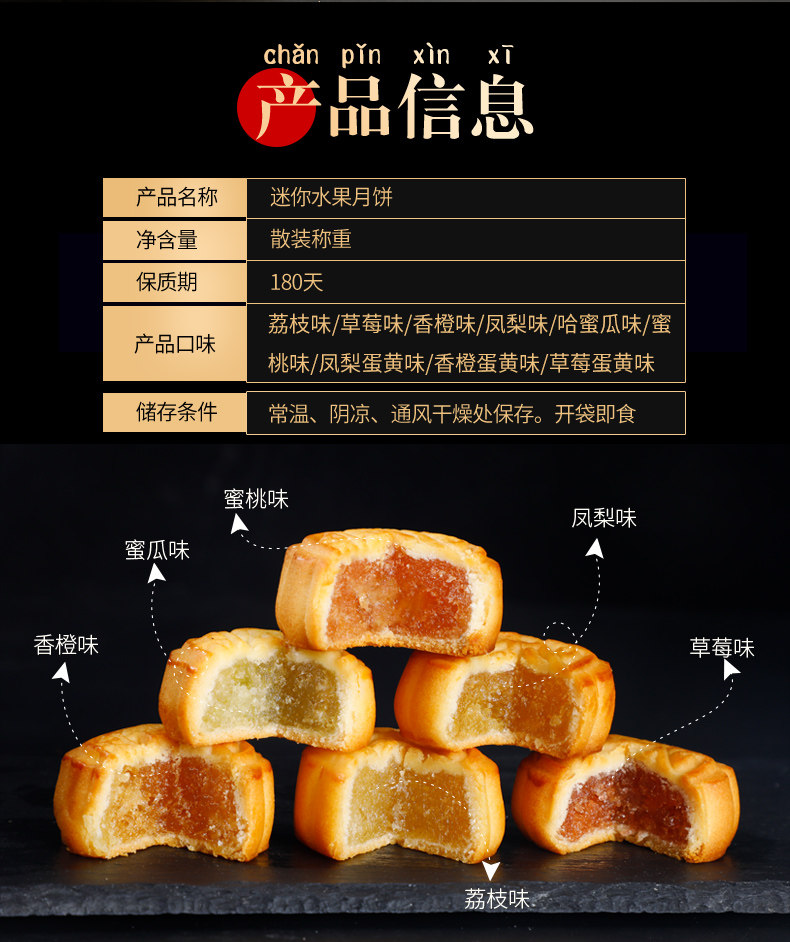 100 кусочков кантонского лунного пищи фрукты фрукты фрукты фрукты фрукты маленький лунный пирог.