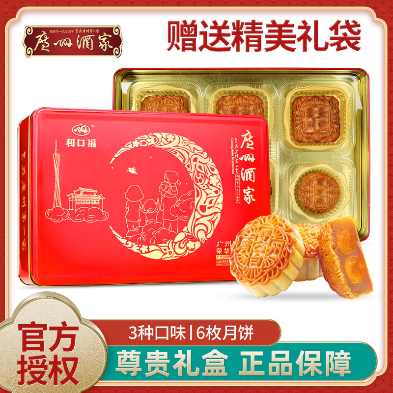 广州酒家 Подарочная коробка Mooncake Likou Благословение двойного яичного желтка и белый лотос Ронгнан