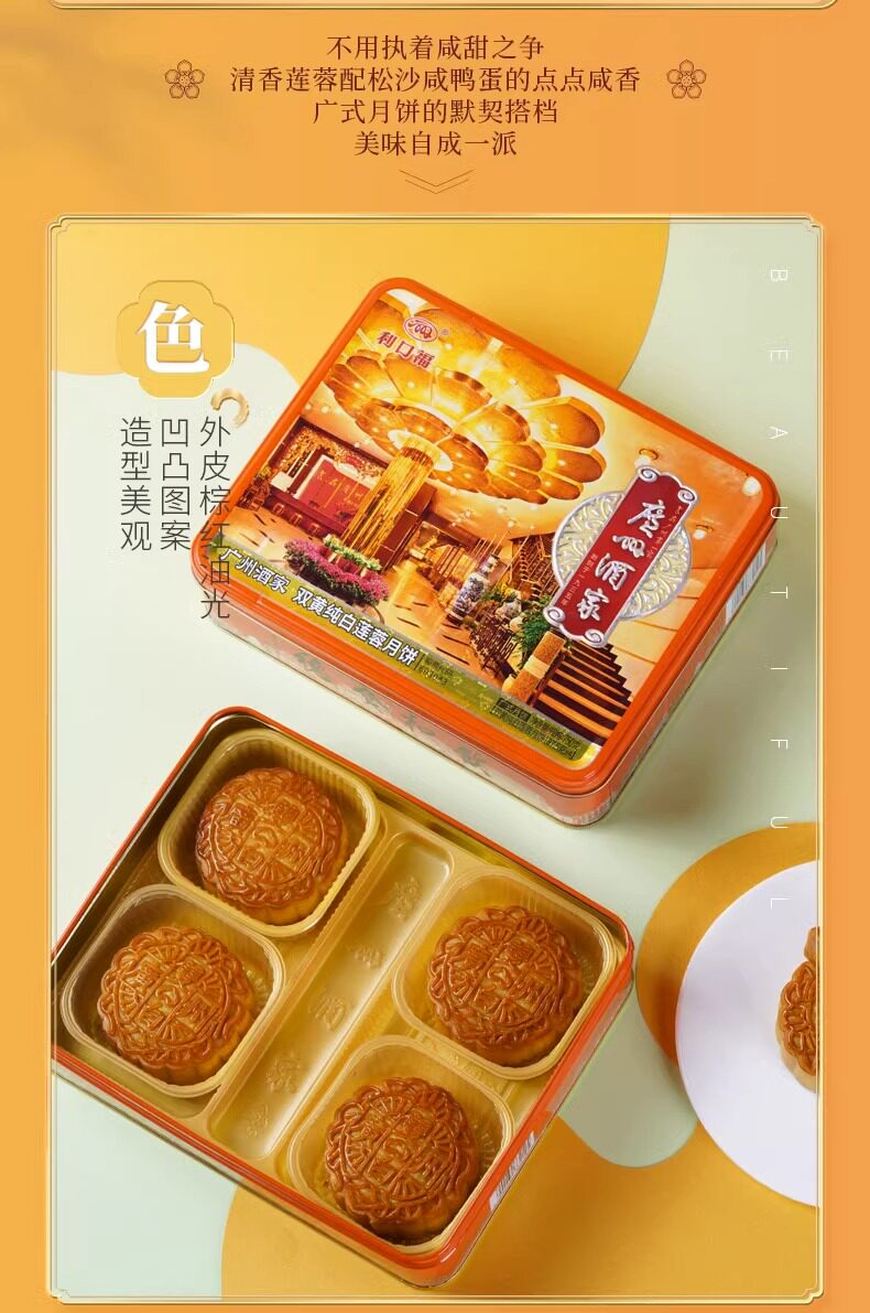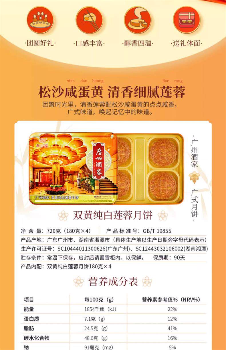 广州酒家 Double Huang Chun White Lotus Mooncake 720G Кантонский яичный яичный желток для лунного пирога Группа купить середины фестивальных подарков