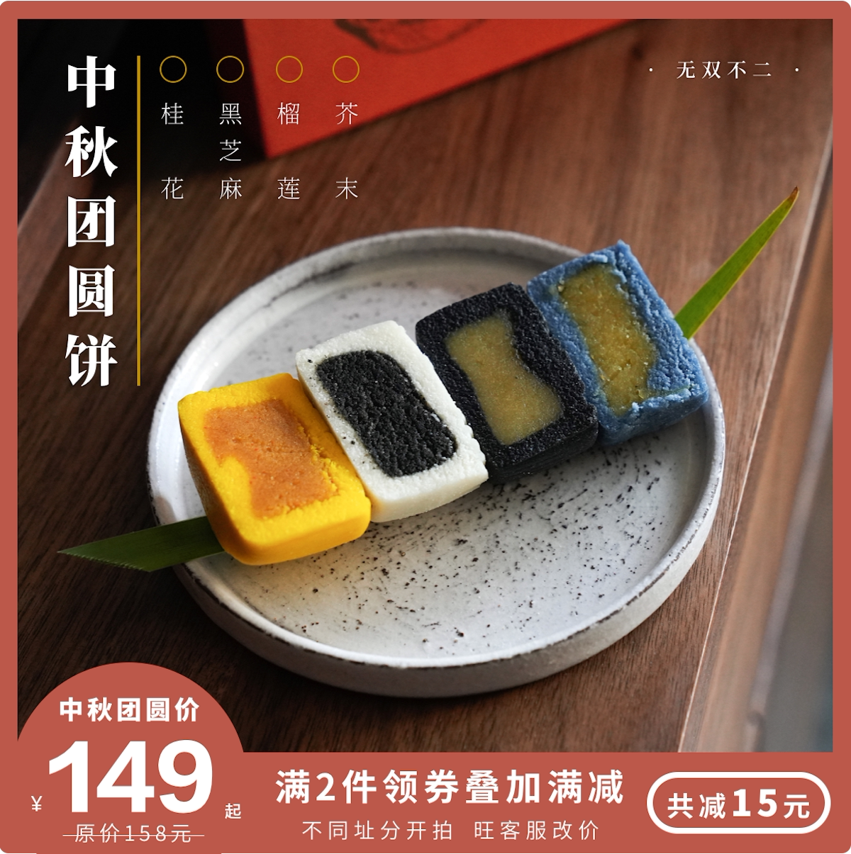 Wuduang Mid -Autumn Festival Reunion Cake Looncake Mooncake Low Sugar Низкий нефть.