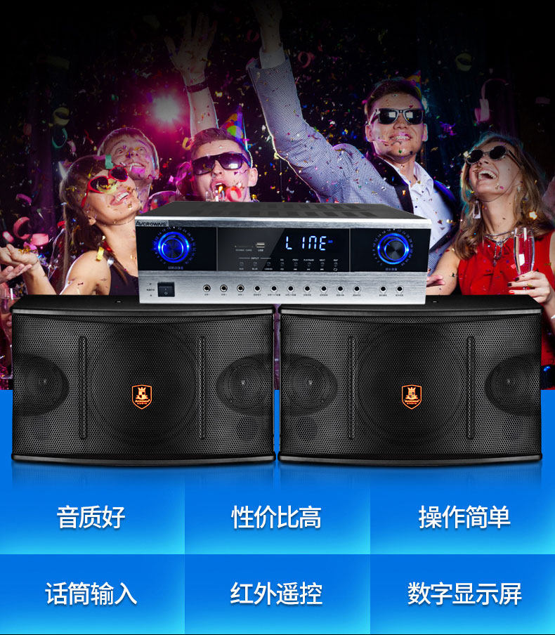 AVCROWNS Комплект, колонки, усилитель, 10 дюймов, bluetooth