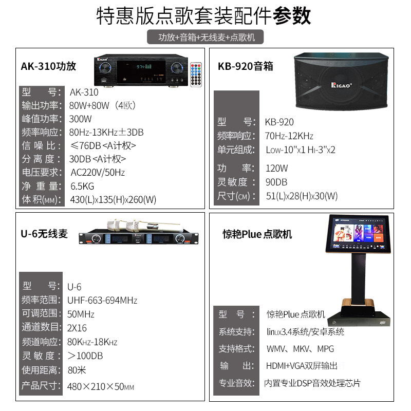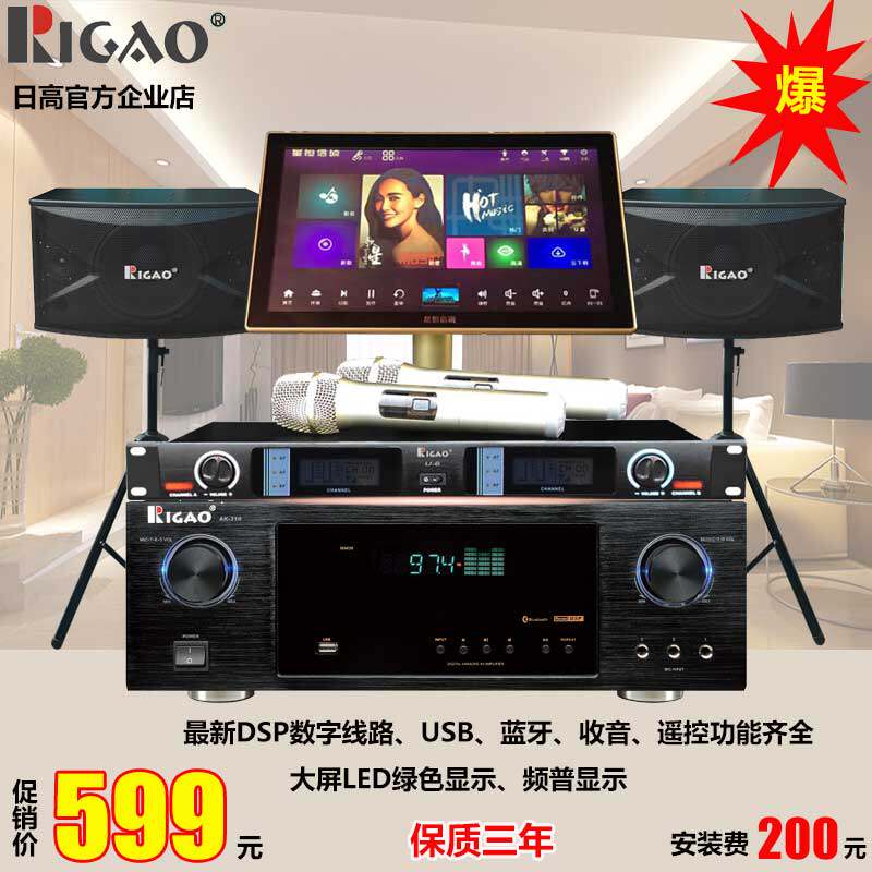 Rigao Японский высокопоставленный аудиопобор высокого уровня высокой мощности профессиональной Bluetooth маленький семейный ktv song machine Полный комплект