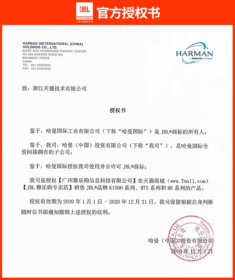 Продавец:jbl雅乐购专卖店