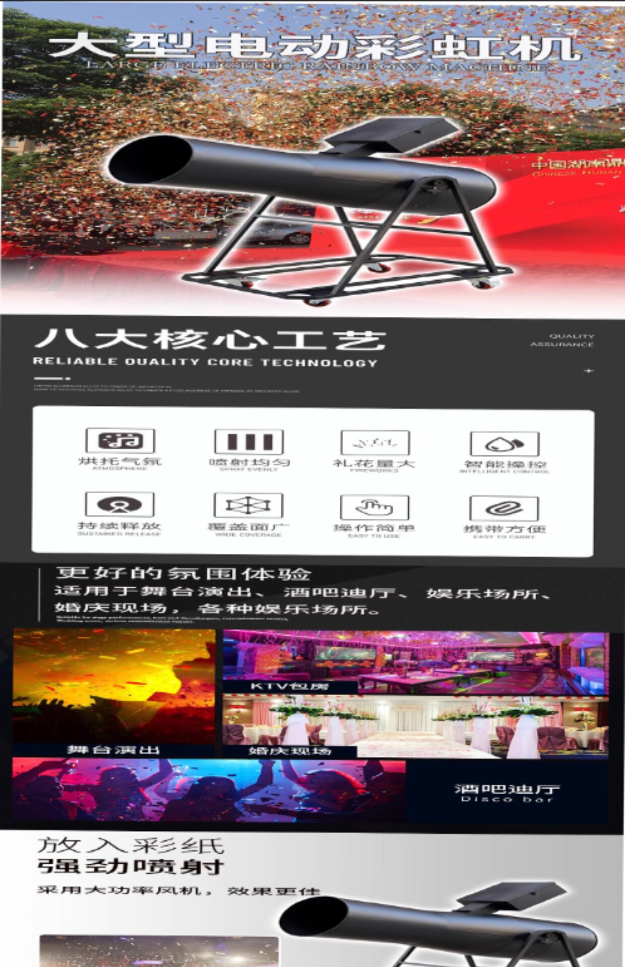 Новый 1800 крупный электрический радужный распылитель сцены сцены сцены Специальные эффекты Праздноваемая вечеринка с цветной бумагой лепесткой