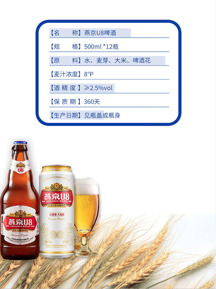 Новое пиво Yanjing U8 небольшой крепости, 500 мл * 12 бутылок/банки, специальное пиво, светлое пиво, 8 градусов, полная коробка