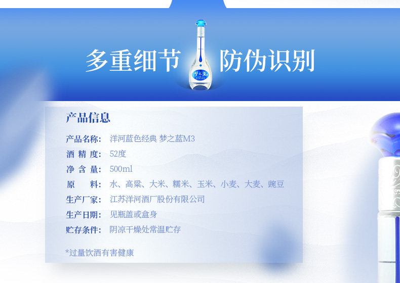 Yanghe Dream Blue M3-52 градусов 500 мл месяца вкуса Сильный вкус белое вино свадебное банкетное сиденье подарок питьевая вода