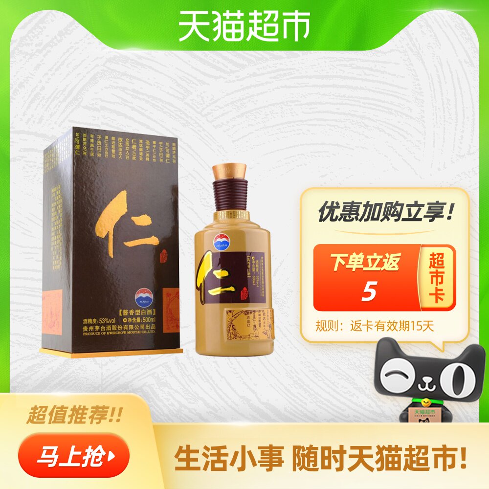 Moutai Renjiu 53% 500мл*1 бутылка ликера со вкусом Маотай производства Moutai Co., Ltd. для праздничных подарков