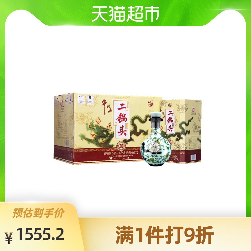 牛栏山 Erguotou 53 -Degree Treasure 30 (зеленый дракон) 500 мл*6 бутылок аромата -Тип цельной коробки установленной
