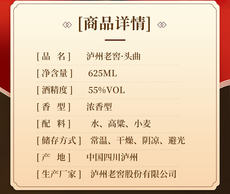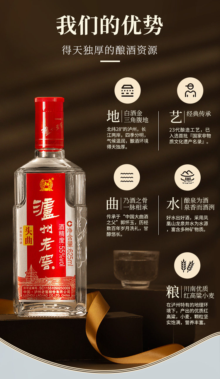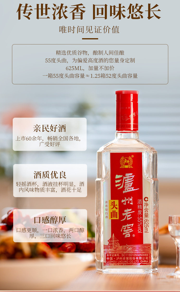 Luzhou Laojiao Head Song 55 градусов 625 мл сильного аромата -высокая высота ликеры