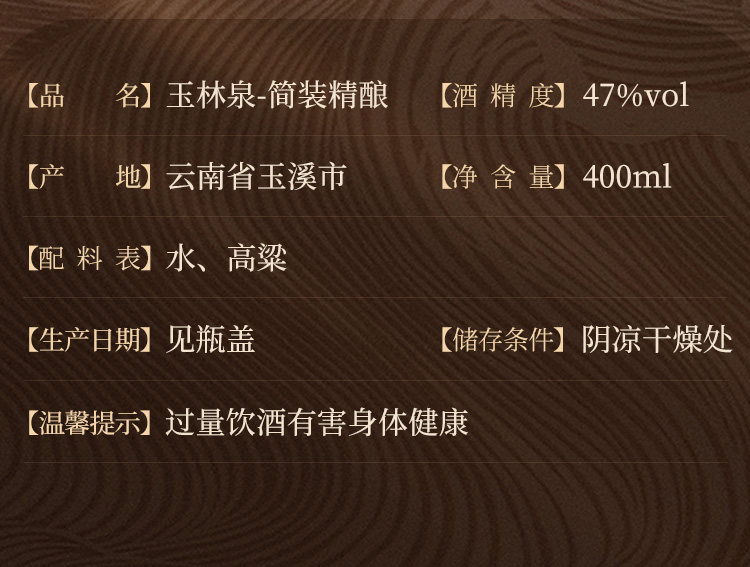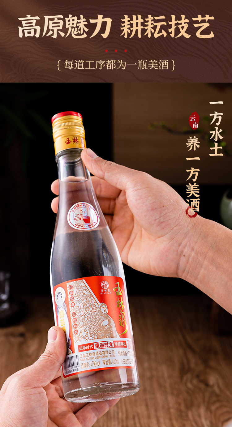 玉林泉 Jiuzhong Win Time установил ремесло 400 мл*6 бутылок юннана Yuxi Baijiu 47 -Degree Sorghum Grain Wine
