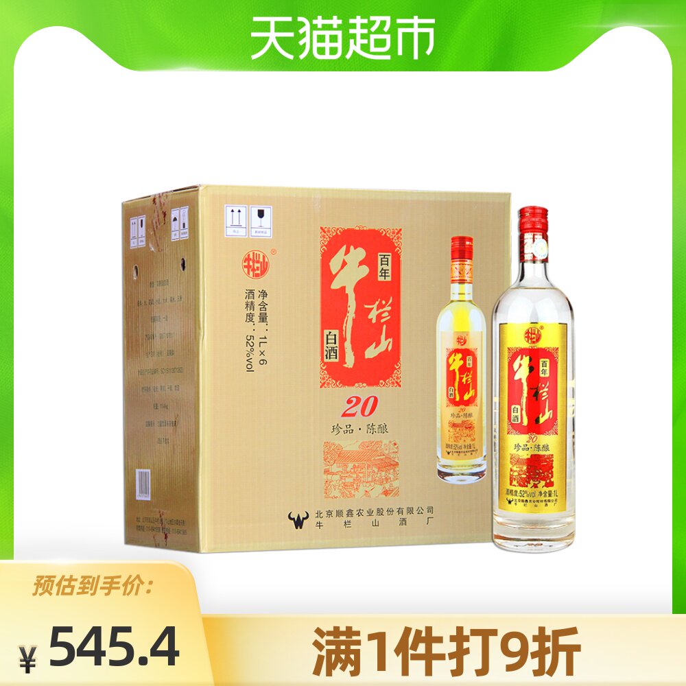 牛栏山 Erguotou 52 градуса, выдержанное в местном золоте (красная этикетка), 1 л * 6 бутылок спиртного напитка с сильным вкусом в коробке
