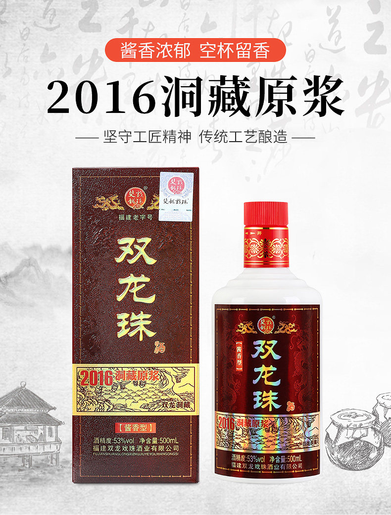 Fujian Old -Модные шаунлонги оперные бусины и скрытый суспензион 2016 53 -Дегри -соус вкус белое вино 500 мл