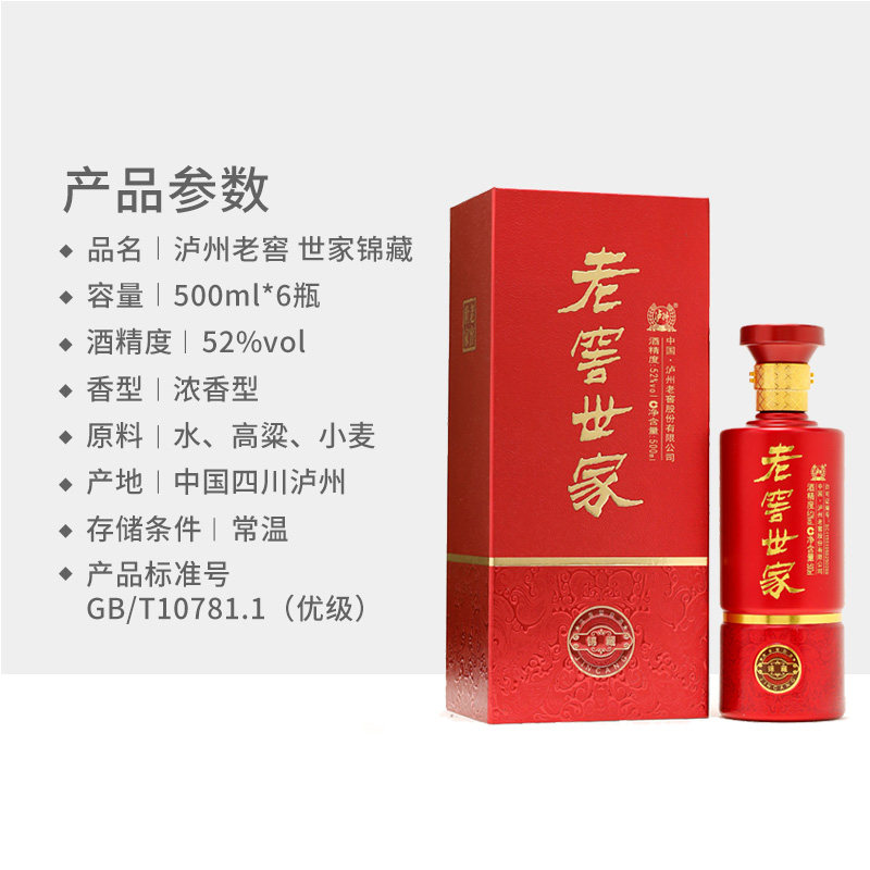 泸州老窖 52 -Degree Fragrance Type Shijia Jinzang 500 мл*6 бутылок Подарочная сумка с полной коробкой содержит подарочные пакеты