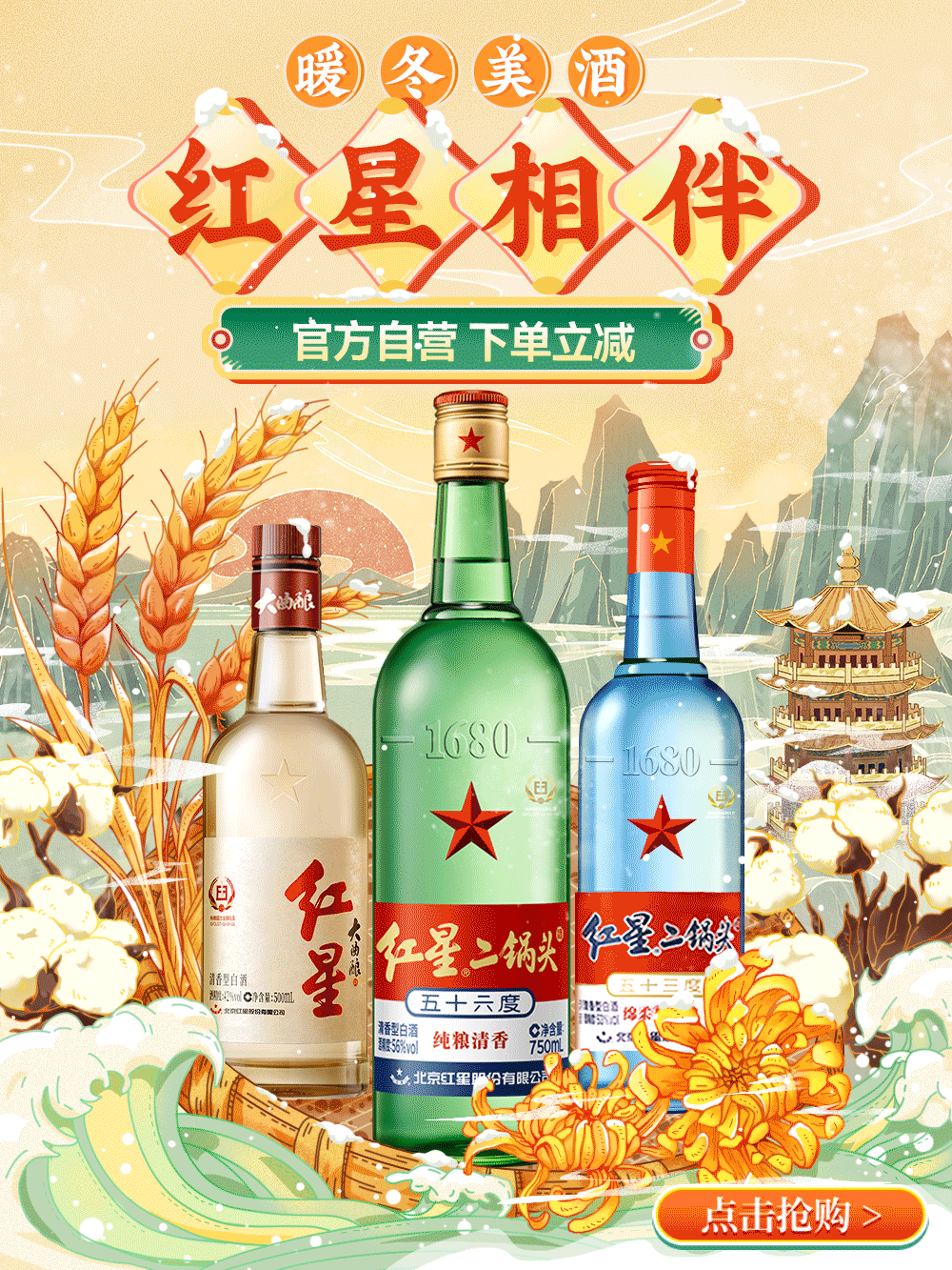 红星 Зеленая бутылка Erguotou Daer 43% 750 мл * 6 бутылок, полная коробка ароматного ликера, чистое зерновое вино
