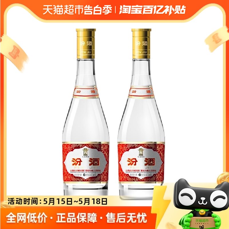 汾酒 Шаньси Синхуа деревня 53 градуса 475 мл*2 бутылка желтой высоты крышки Болфен свежее аромат белое вино чистое зерно пивоварение