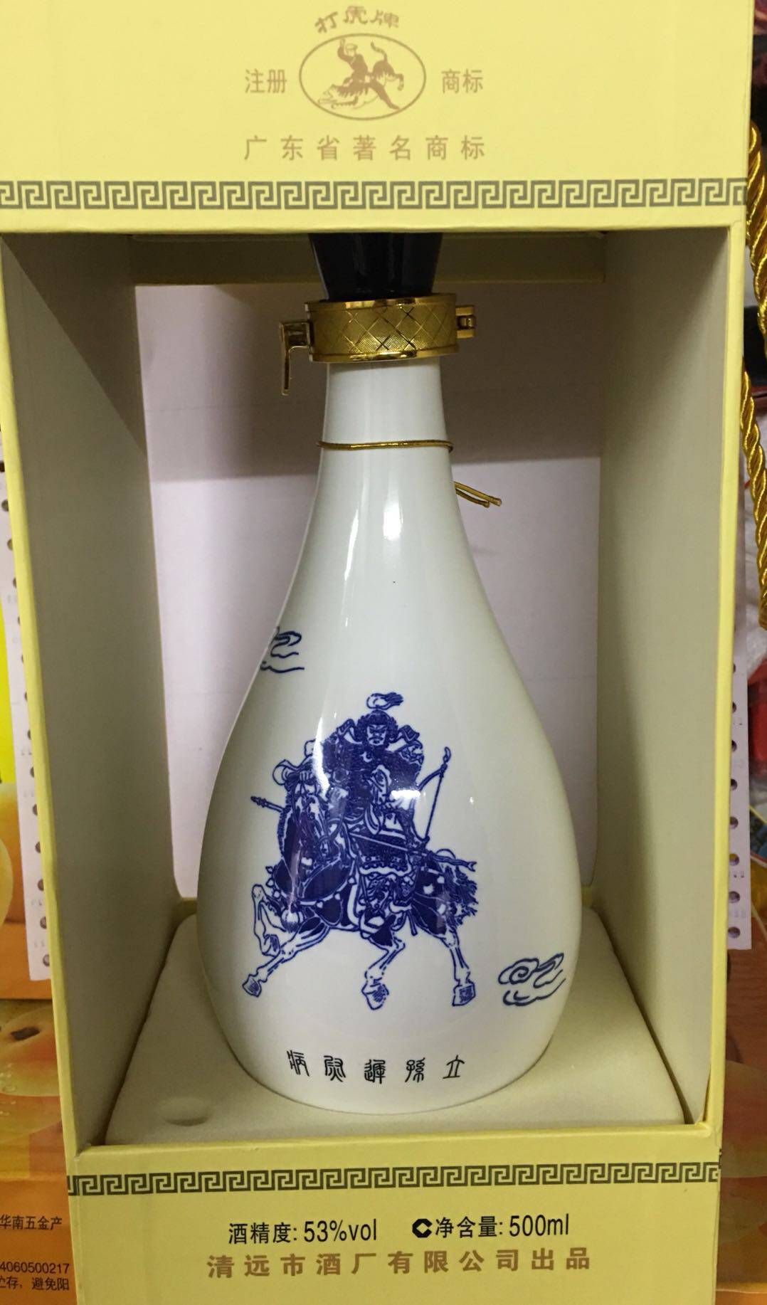 Играть в бренд Tiger Guangdong Qingyuan 53 -Degree Feixia Жидкий синий фарфоровый винный соус. Сторонник 500 мл одиночная бутылка 2019 выпускается на заводе
